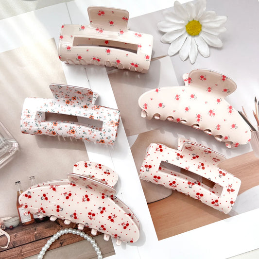Vintage Floral Hair Claw Female Temperament Elegant Printing Claw