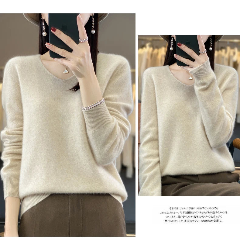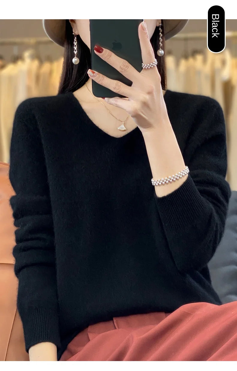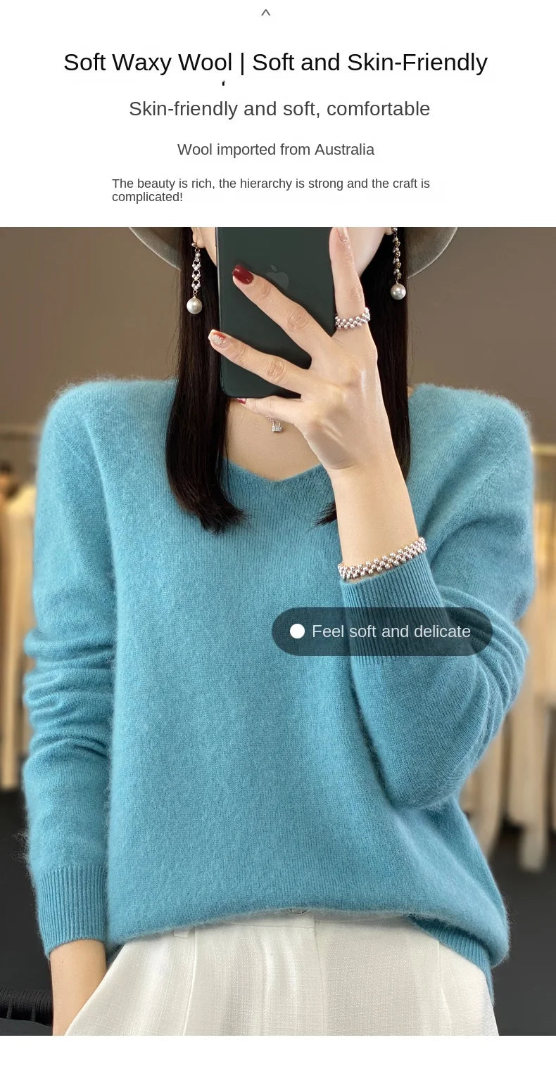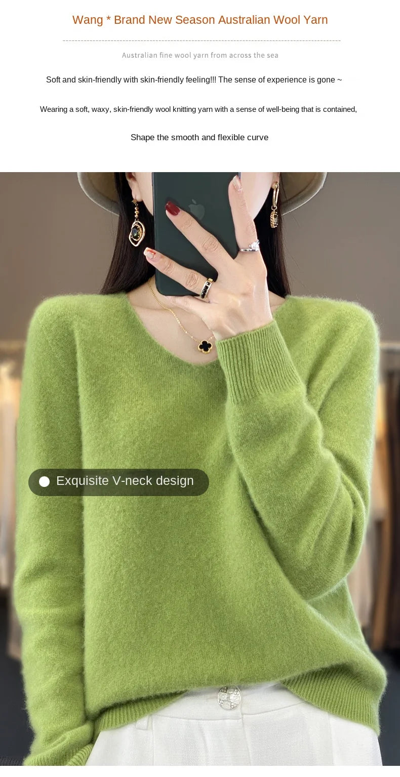 Merino Pure Wool V-neck Autumn And Winter Pullover Sweater