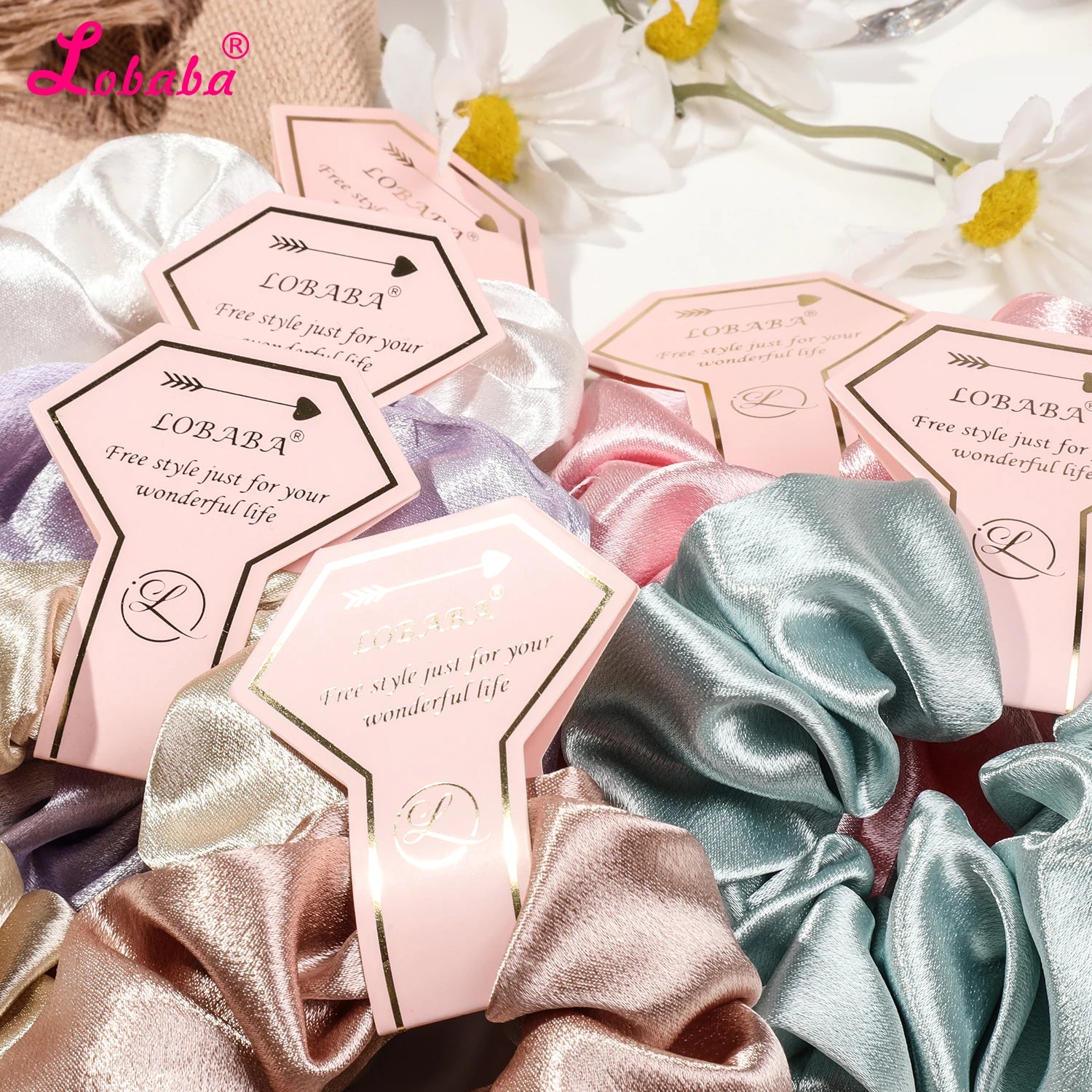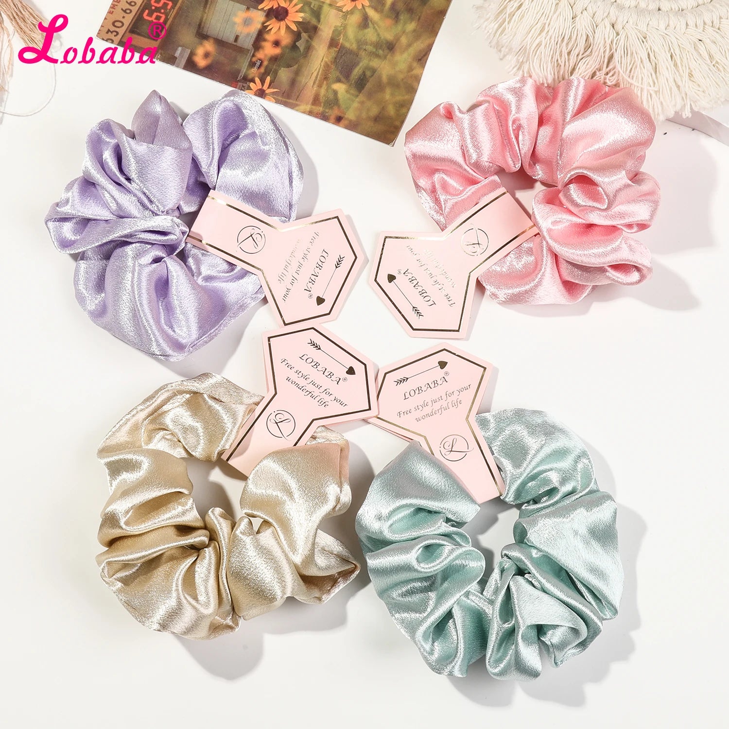 6 Pcs Pink Satin Bridesmaid Scrunchies Bachelorette Hair Ties