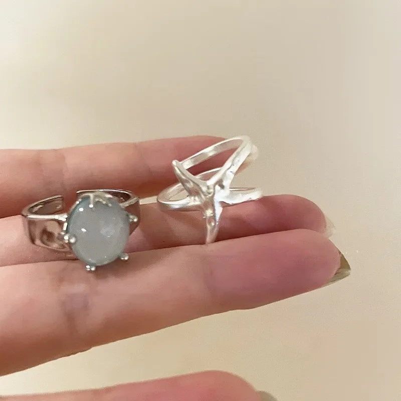 925 Sterling Silver Rings Handmade Simple Blue Stone Star