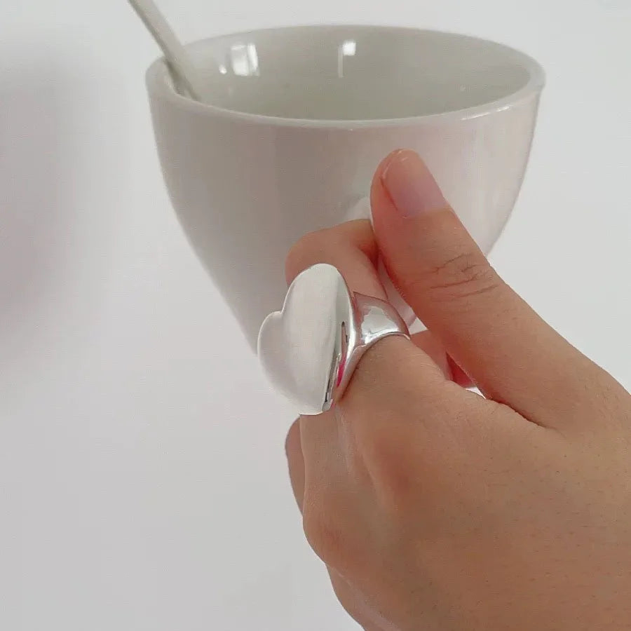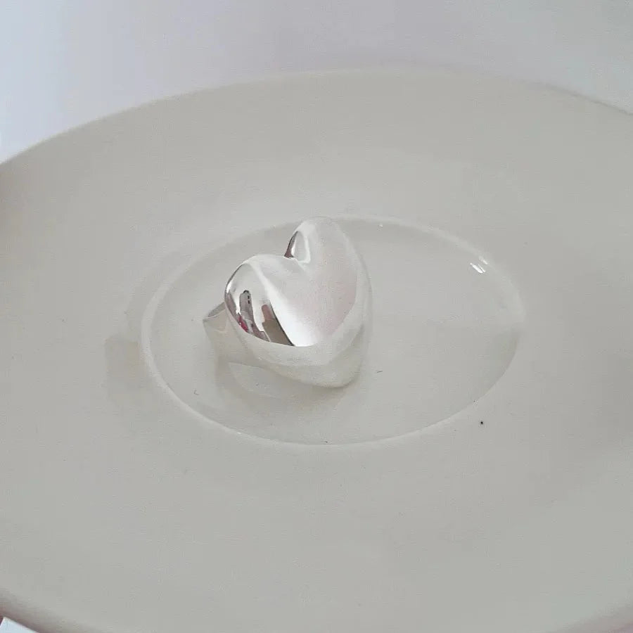 925 Sterling Silver Rings Adjustable Simple Smooth Heart Ring