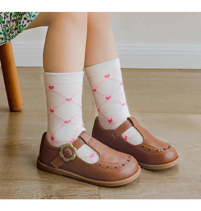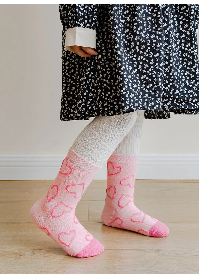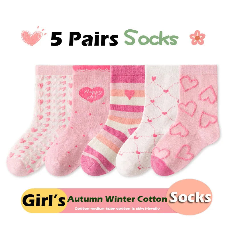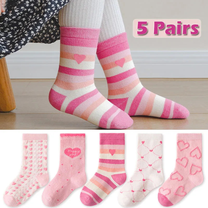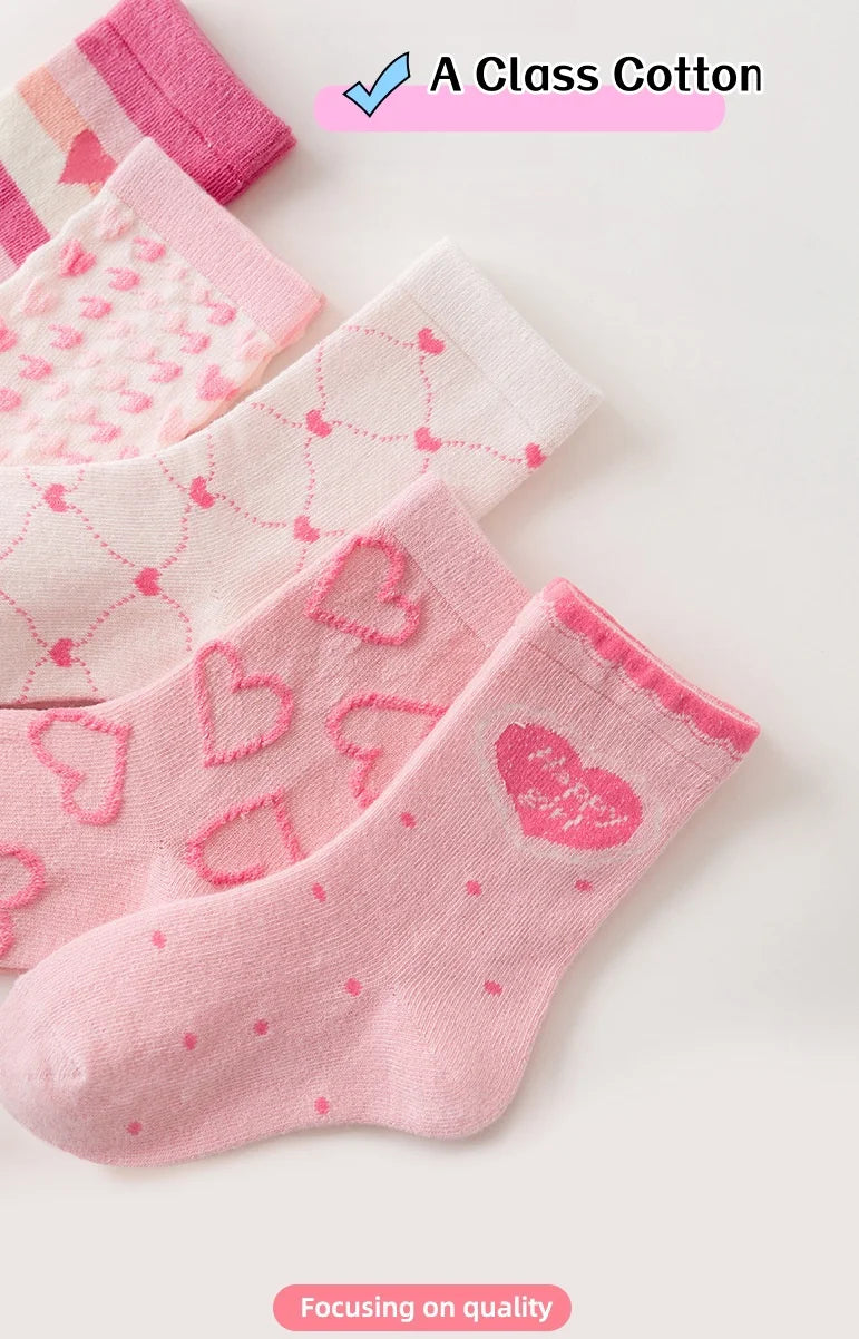 Baby Girls Cotton Socks 5 Pairs Pink Sweet Love Pattern