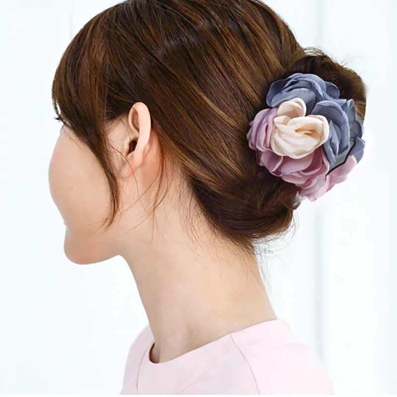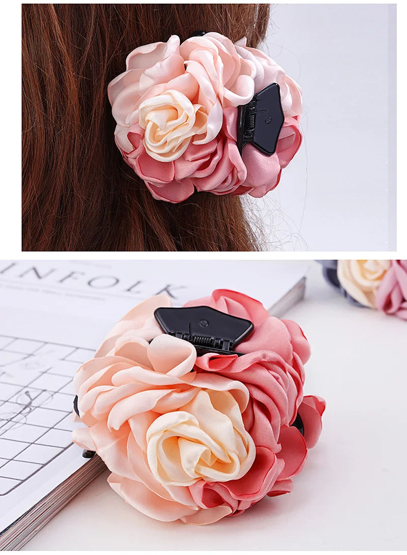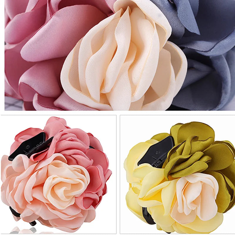 Big Camellia Flower Hair Claws Clips Women Girls Muliticolor Rose Large Hair Clamps Ponytail Holder Barrettes Hair Accessories