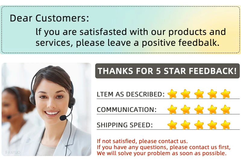 4. Please leaving a message before you give the bad feedback, if the products have some problems. IFANYUO thanks for your understandings