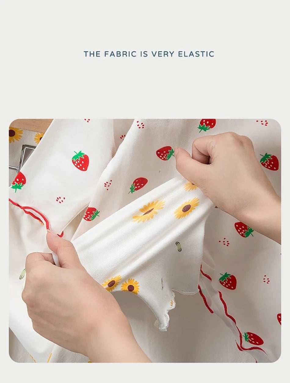 Name:Girls Summer Pajama Sets Stylish Cartoon Pattern Printing Short Sleeve Top and Pants Made from Luxurious Cozy Ice Silk Material