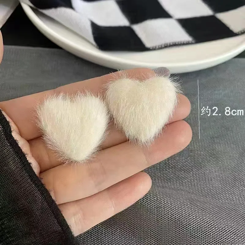Type: Women Korean Fashion Winter White Plush Stud Earrings