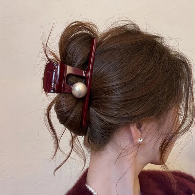 Large Red Pearl Hair Grab for Women Girls Headwear