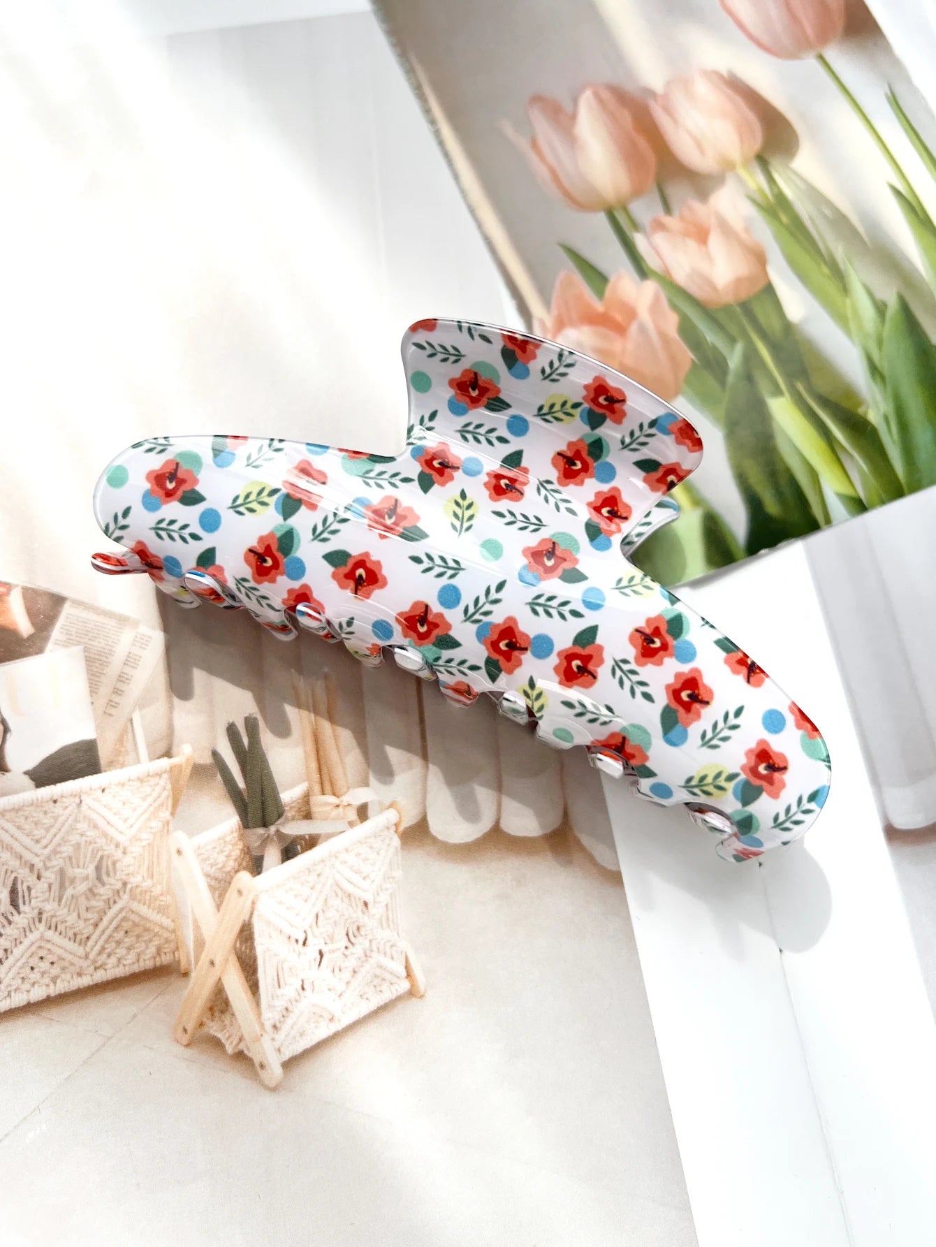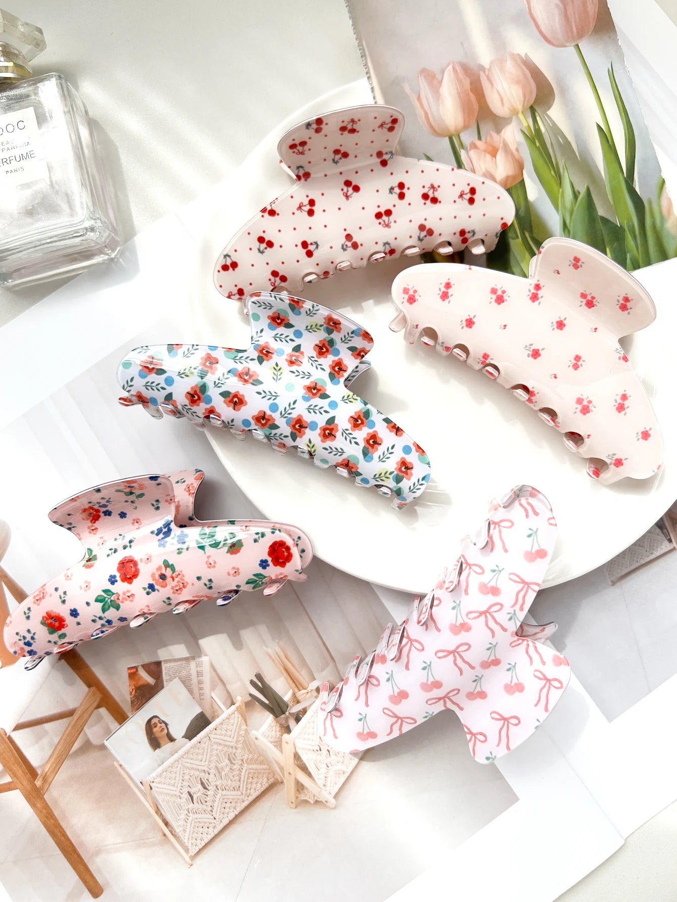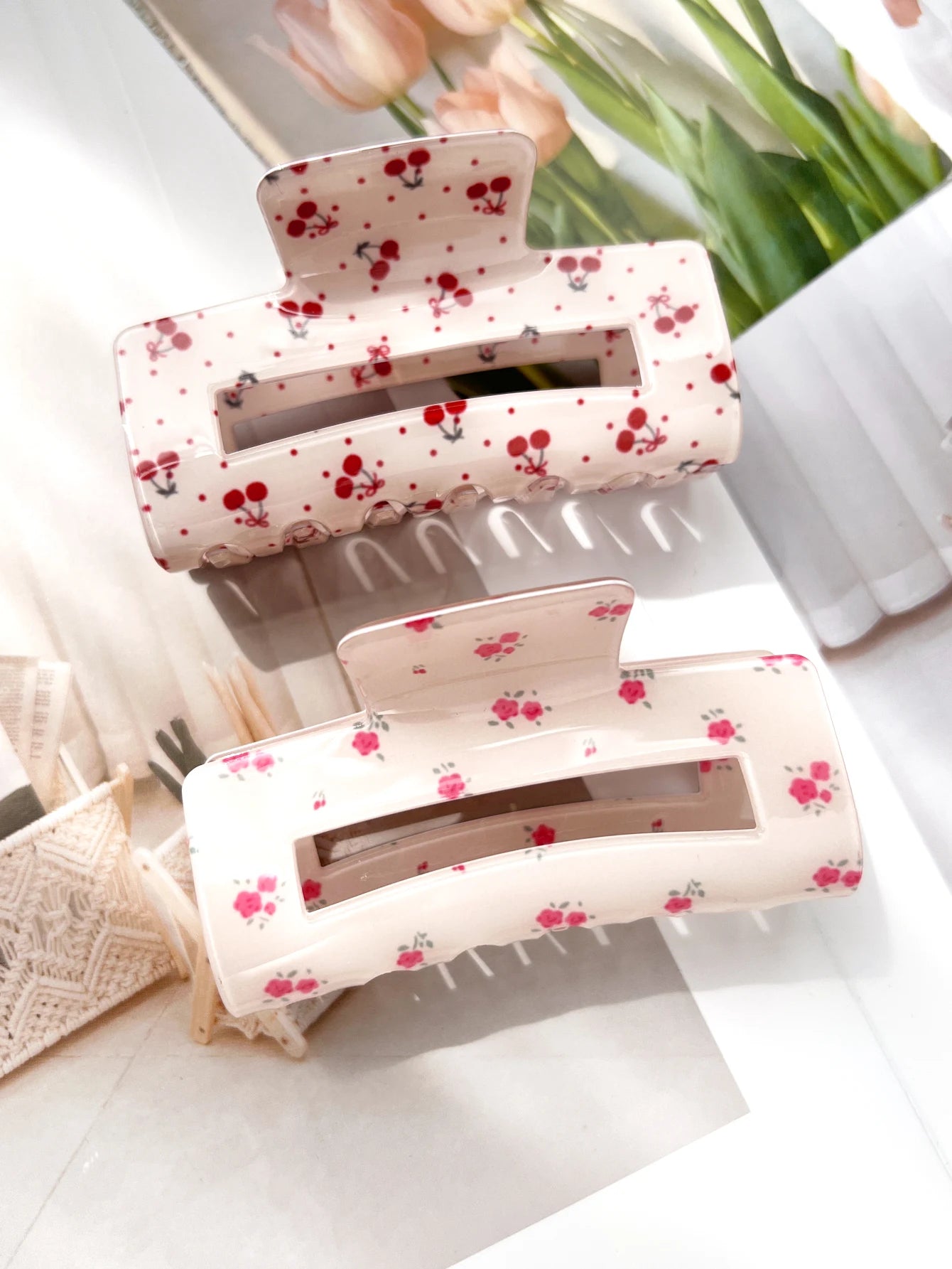 1.Trendy Women Hair Clips: Unlike the ordinary solid color hair clips on the market, our cute hair claw clips with floral elements printed on it will make you look more unique this summer.