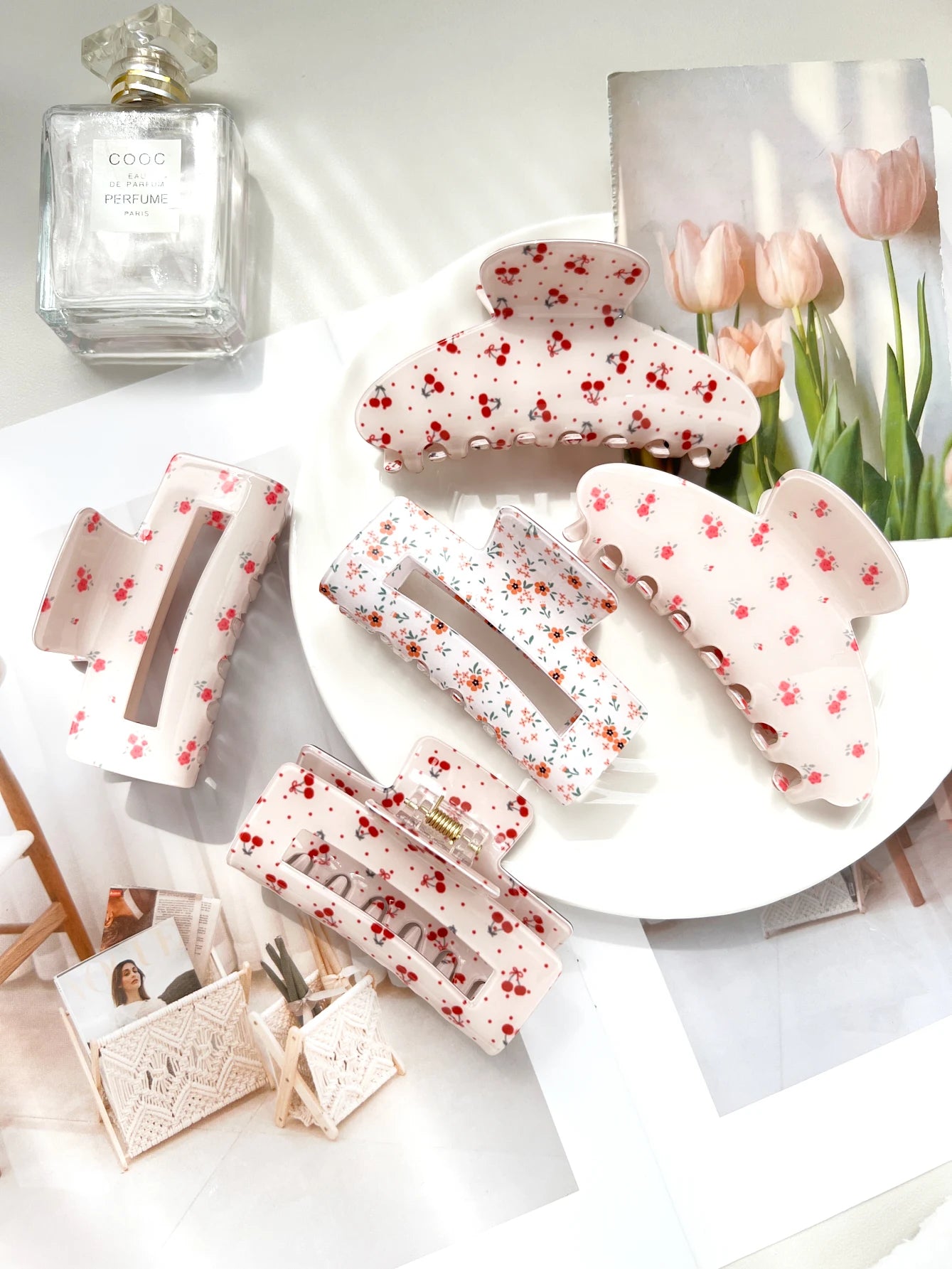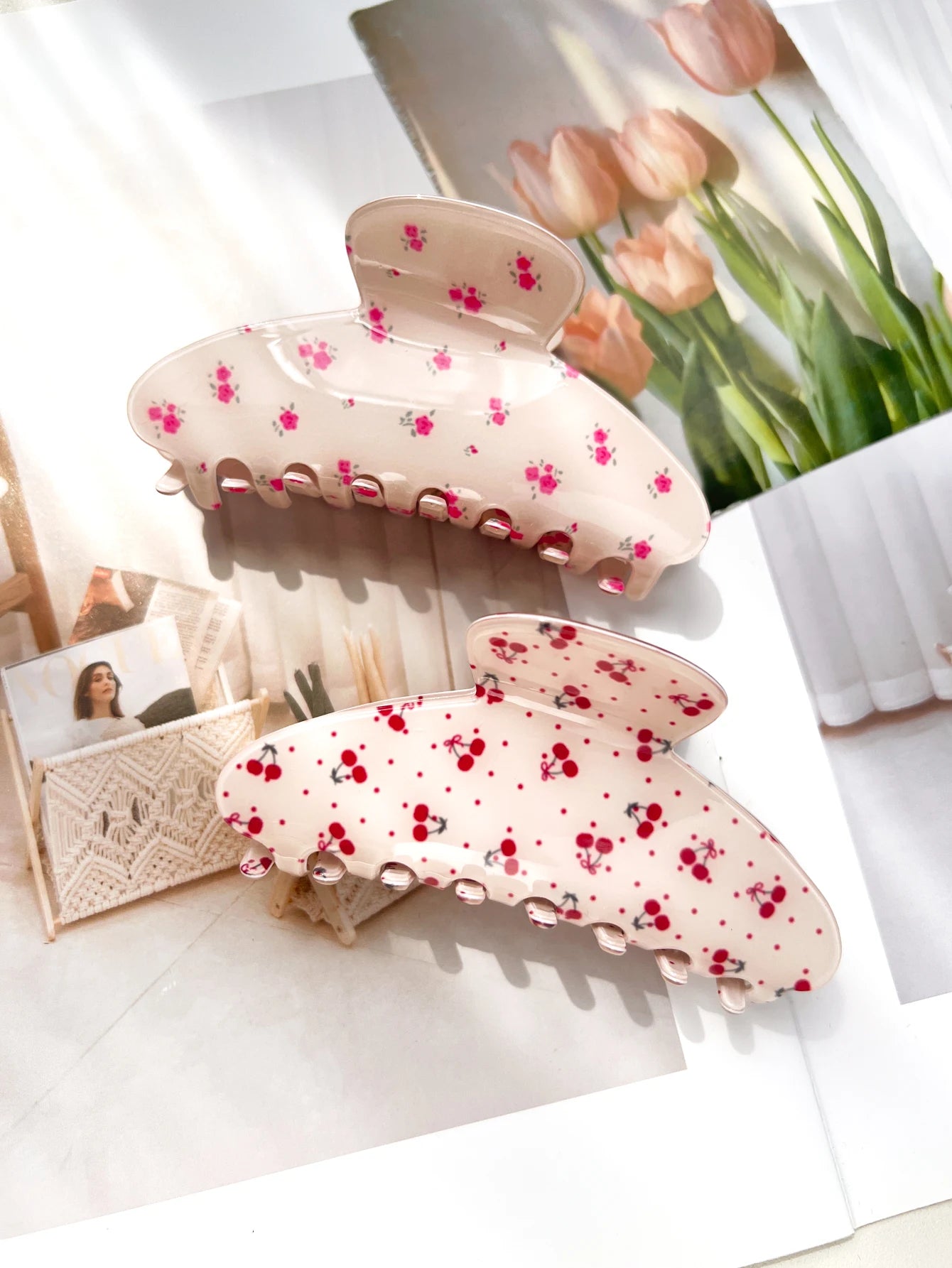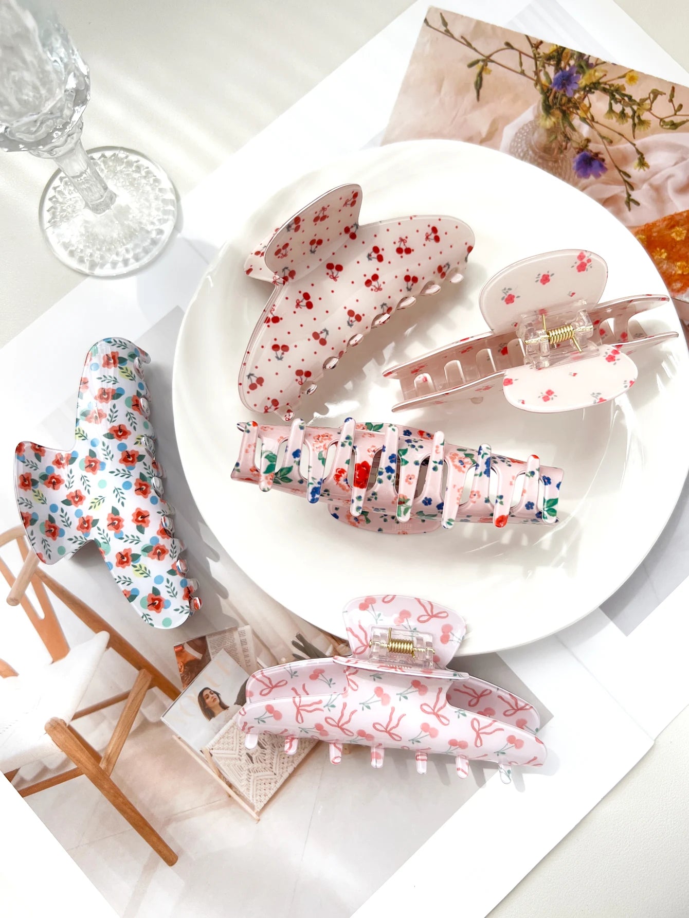 1.Trendy Women Hair Clips: Unlike the ordinary solid color hair clips on the market, our cute hair claw clips with floral elements printed on it will make you look more unique this summer.