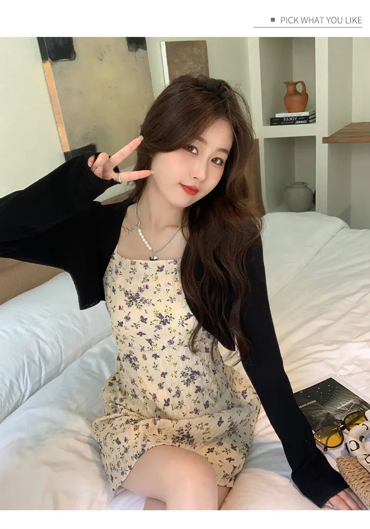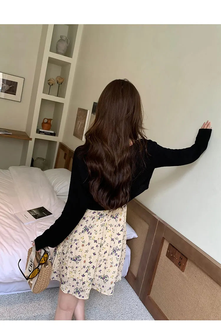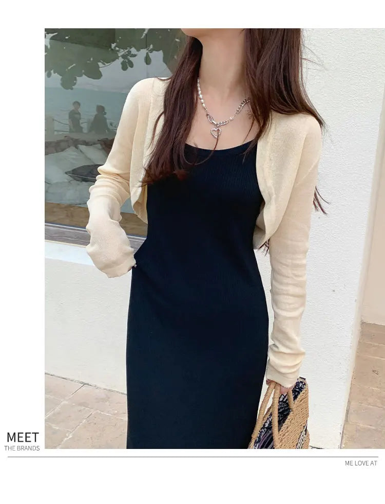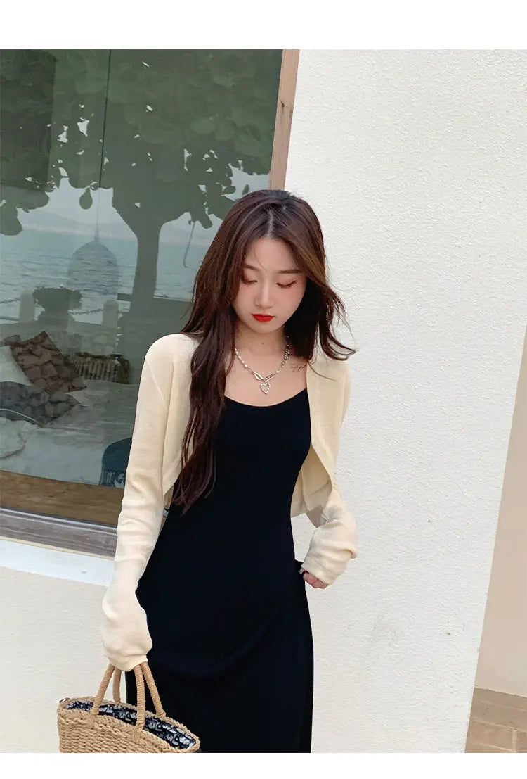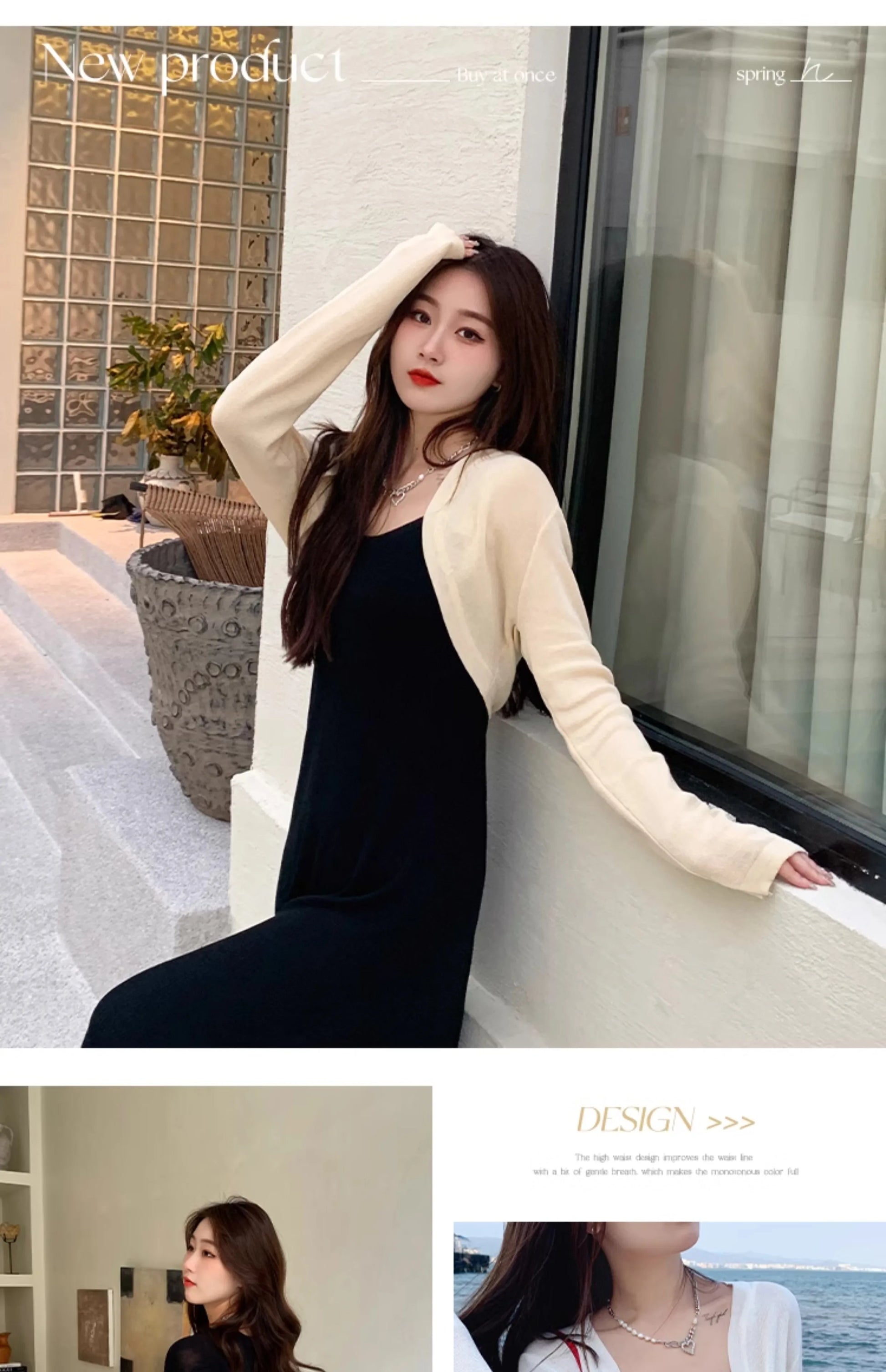 White short ice silk knitted sun protection cardigan, women's thin summer suspender skirt, layered with thin gauze jacket, air-conditioned cover up