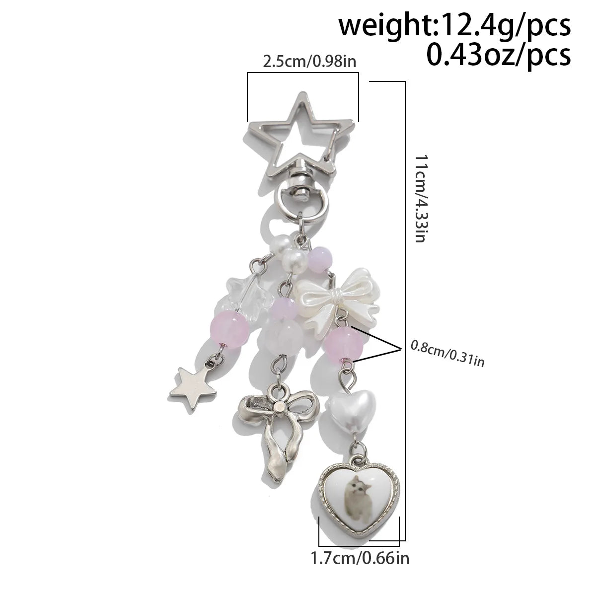 Y2K Fashion Flower Star Love Bow Strawberry Pendant Acrylic Keychain