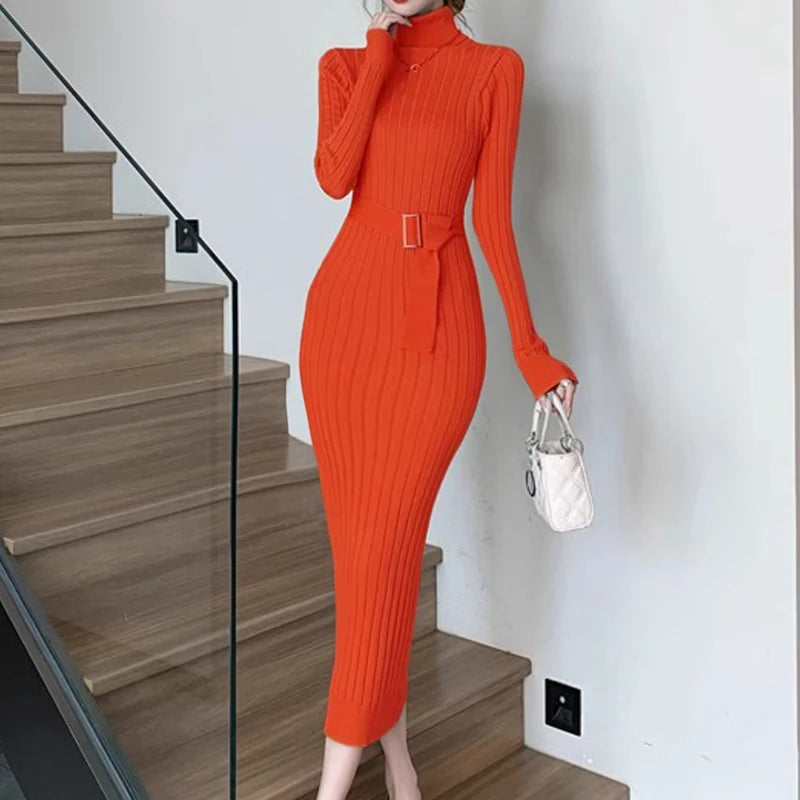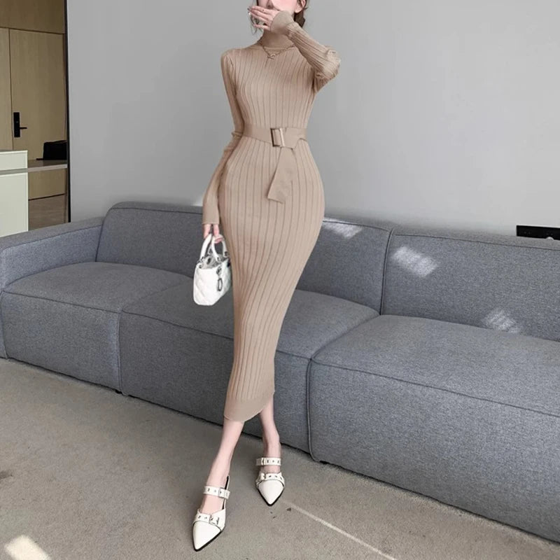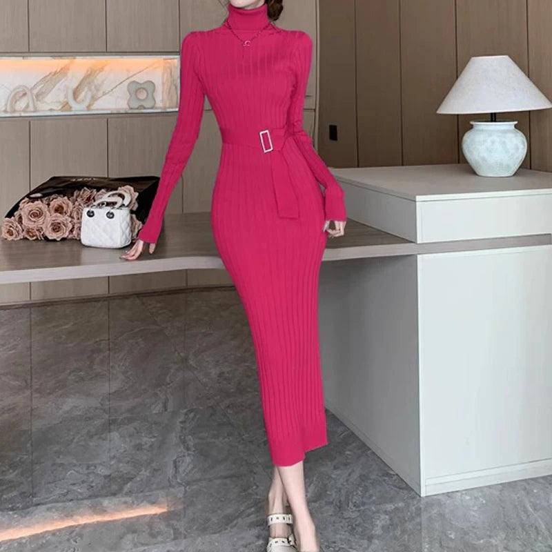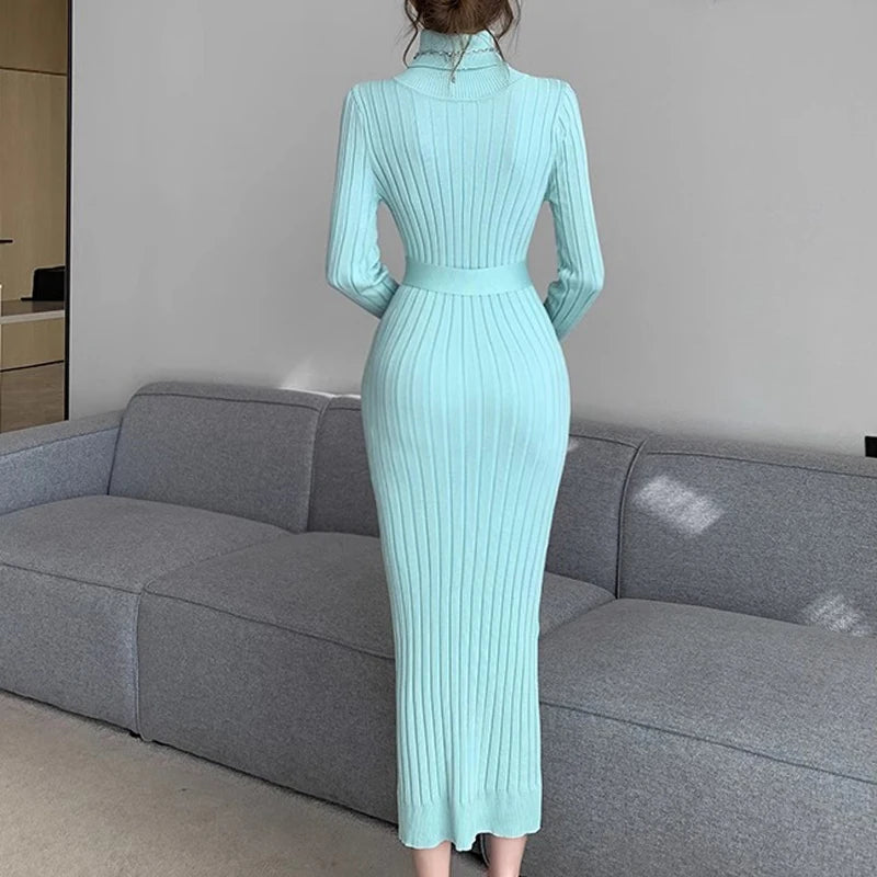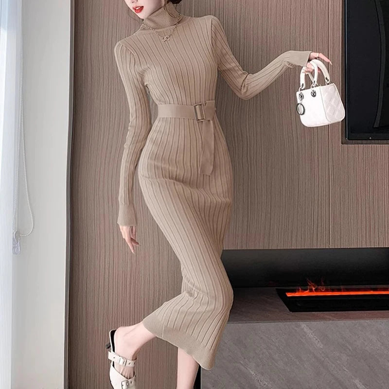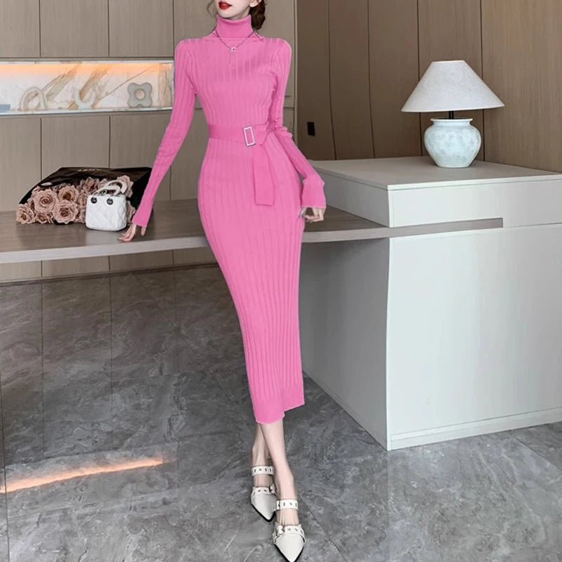 Maxi Dress 2024 Autumn Winter Turtleneck Sweater Dress