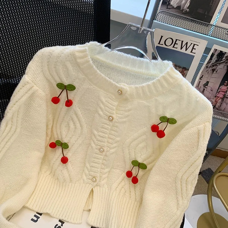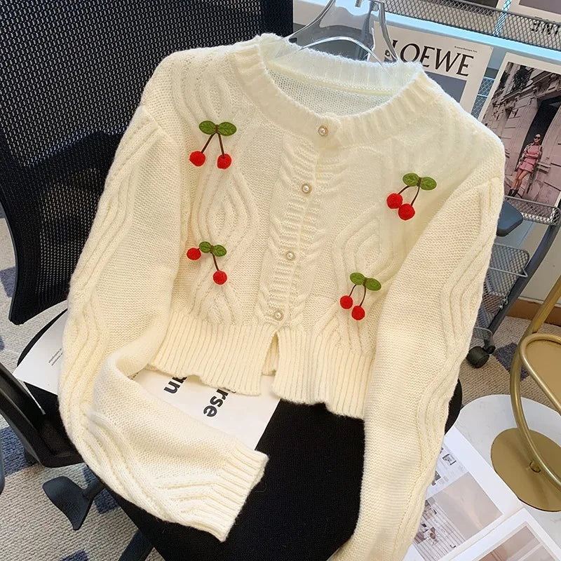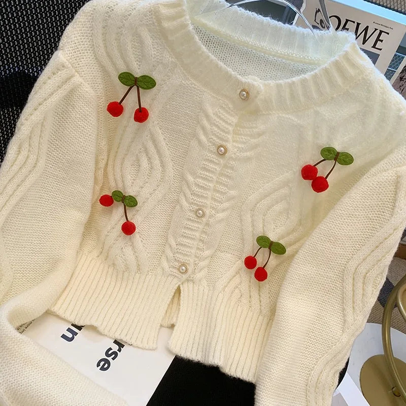Women Cardigans 2024 New Korean Fashion Cherry Design